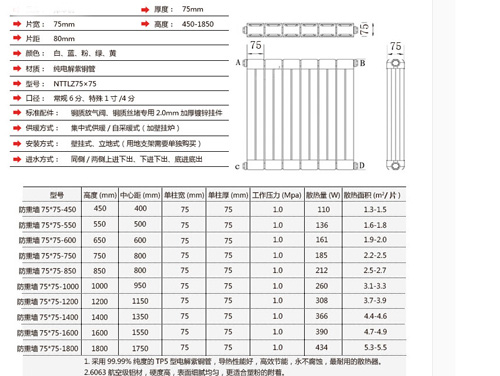 銅鋁復(fù)合75x75 防熏墻定向散熱器